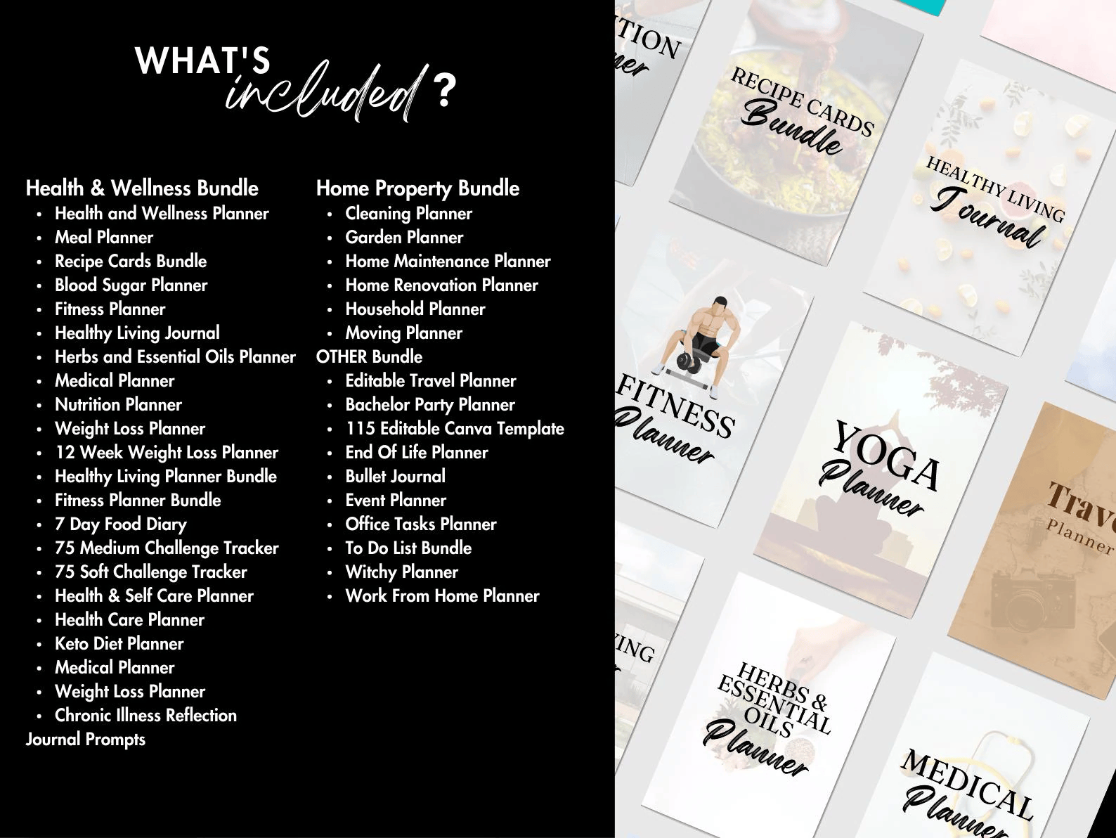 ✔️ Plus de 80 modèles Canva bonus (suivi des habitudes, suivi des économies, agendas, journaux de gratitude, etc.)